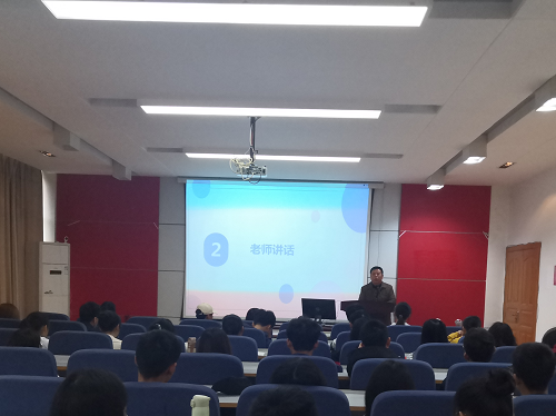 二是老师发表讲话。党委副书记周春初与团委书记夏妮分别总结了本学期的各项学生工作,结合实际针对不足的地方提出要求,要求增强班级建设、提高学生思想积极性,学生干部加强沟通、积极联系、及时解决出现的问题,继续协同做好学院学风建设、寝室文化建设等。除此之外,还着重强调了人身安全、财产安全以及防诈骗等知识内容。