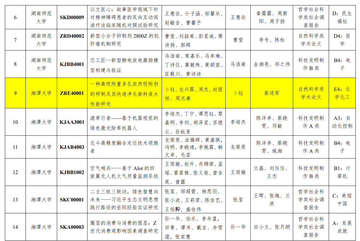 1月学校启动该项目以来,该团队将《ZIF-8 衍生氮掺杂多孔炭吸附剂的制备及对罗丹明 B 吸附性能研究》大学生创新训练项目的实验成果转换,经过校初赛、复赛的答辩评选,经过激烈角逐,在全校自然科学类学术论文类别中获得唯一参加省赛的名额。据悉这也是以诚为本赢在信誉9001cc代表队首次在全校挑战杯系列赛事选拔中获得参赛名额并最终获得湖南省三等奖,实现了从01的突破。