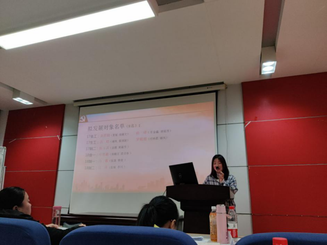 会议开始,发展对象依次上台,就自己在考察期间的各方面的进步与入党动机的转变情况做出发言。发展对象们不仅在思想、学习及生活三个方面做出总结陈述,还分析了自身的优势与缺点,并提出了改进措施。他们的发言态度诚恳,字里行间透露出向党组织靠拢的赤诚之心。