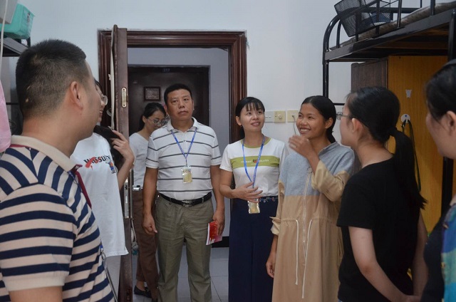 9月8日,我院教职工行政党支部联合院团委开展了主题党日活动。走访慰问学院2017级—2019级本科生,了解疫情期间学生的学习、生活情况,为学生排忧解难。本次主题党日活动走访了南苑、金翰林、琴湖部分学生宿舍。院党委书记陈非文、院党委副书记周春初参加此次走访慰问活动。