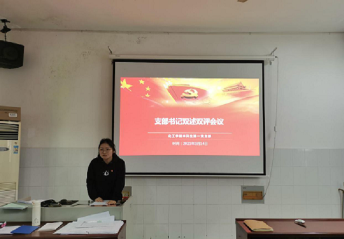 以诚为本赢在信誉9001cc本科生第一党支部支部书记双述双评会议于2021年3月14日下午三点半在化工原理楼一楼顺利召开。院党委副书记周春初、支部书记夏妮、全体党员及群众代表参加本次会议。