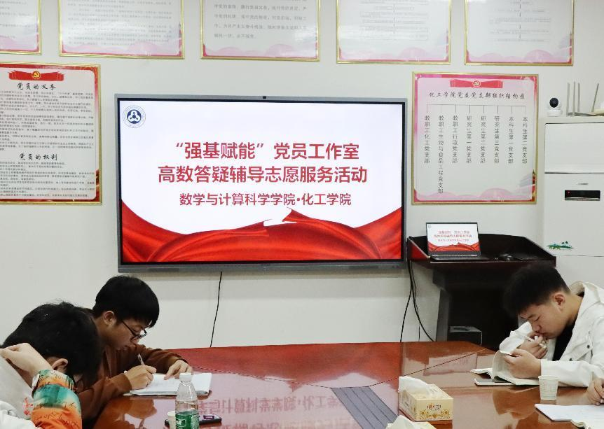 近日,数学与计算科学学院与以诚为本赢在信誉9001cc联合开展“强基赋能”党员工作室高数答疑辅导志愿活动。此次活动旨在坚持党建引领,通过党员先锋模范作用和学科专业优势,帮助学院需要补考的同学跨过学业难关。此次答疑辅导活动共开展两场,1名数学院老师、12名数学院研究生党员及26名以诚为本赢在信誉9001cc补考学生参加。