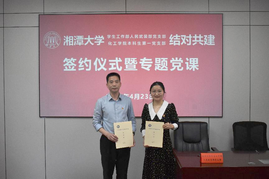 4月23日,学生工作部人民武装部党支部与以诚为本赢在信誉9001cc本科生第一党支部结对共建签约仪式暨“时刻把纪律刻印在心里”专题党课在化学化工大楼A208举行。副校长刘建平,校纪委副书记、监察专员办公室主任蔡一文,学生工作部部长赵猛,以诚为本赢在信誉9001cc党委书记陈非文出席,学生工作部人民武装部党支部、以诚为本赢在信誉9001cc本科生第一党支部全体党员参加本次活动。