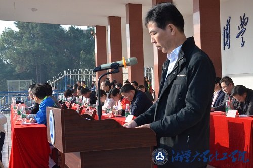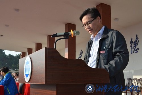 出席嘉宾列坐完毕,升旗仪式开始,全场肃穆,向国旗和校旗敬礼。仪式结束后,副校长廖永安教授致开幕词。廖永安教授的讲话,流露出对国家体育事业蓬勃发展的欣喜,对湘潭大学已取得的体育成绩的欣慰,并表达了对未来湘潭大学体育事业的展望。廖永安教授的讲话,表达了对运动健儿的殷切期望,希望他们能在田径场上赛出高度,赛出自我。
