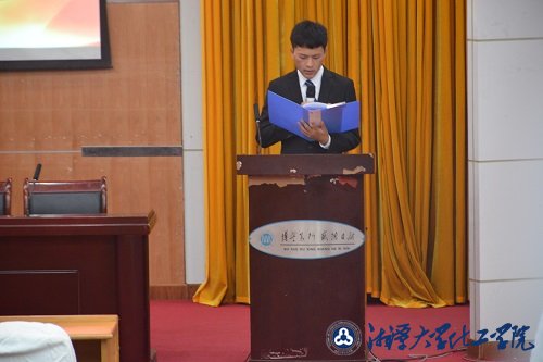 接着优秀学子蔡智慧发言。在发言中,她讲述了来到湘潭大学这几年的亲身经历,证明了学生工作和学习这两者是可以兼顾的,希望大家不要在大学四年结束后,后悔虚度了光阴。