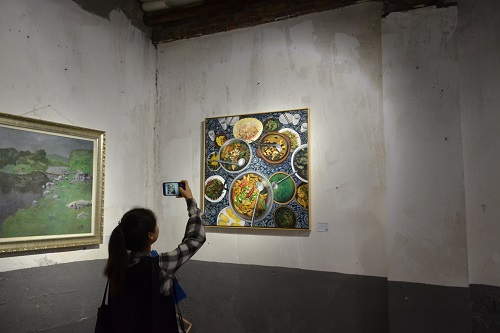学生们在观赏作品时都全神贯注,这些作品风格多样,有的谨严、沉重、帐惘,仿佛独上高楼,望尽天涯路;有的沉浸、忘我,已入佳境,为伊消得人憔悴;有的轻松、调侃、诙谐,返朴归真,呈“那人却在灯火阑珊处”之境,和而不同,异彩纷呈。