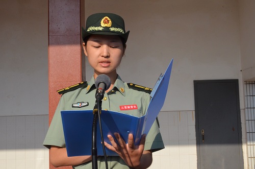“湘大自信,湘大人自信,湘大精神自信”,来自艺术学院的19级新生代表诉说了自己身为一个湘大学子的自豪,并且表示很开心能有这个军训的机会来打磨自己。接着军训模拟营教官代表发言,她表达了一定不辜负大家的信任与期望、把新生军训带好的决心。