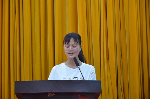 (图为本科新生代表肖玉婷发言)