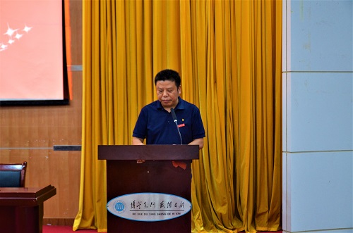 (图为优秀教师代表韩路长教授发言)