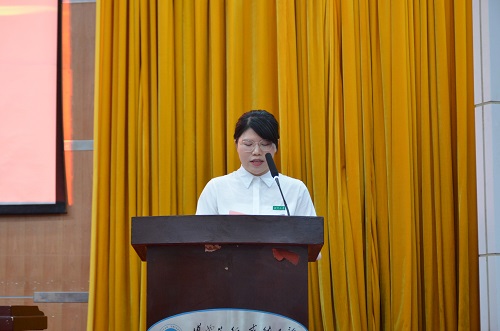 (图为研究生新生代表黄蔺芳发言)