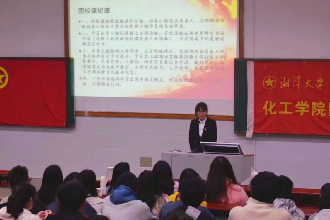 团校课开始前,来自20、21级各班的学员佩戴团徽到场。随后,主持人卢斯斯致开场词,宣布团校课正式开始,主持人向大家介绍了本节课的活动流程、团校课的纪律,优秀学员的评选标准,以及此次团校课的主题:化“感动中国”为“奋斗中国”,以英雄为榜样,奉献青春力量。