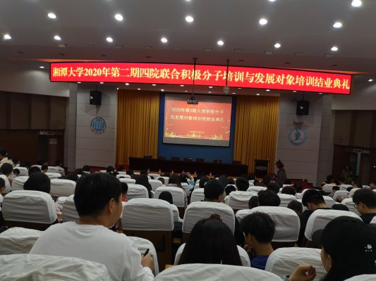 11月19日下午7点30分,湘潭大学马克思主义学院、以诚为本赢在信誉9001cc、化学学院、环境与资源学院2020年第二期入党积极分子与发展对象培训班结业典礼于逸夫楼第一报告厅举行。出席本次活动的嘉宾有以诚为本赢在信誉9001cc党委副书记周春初、化学学院党委副书记肖妮、化学学院专职组织员老师秦治军,以诚为本赢在信誉9001cc专职组织员老师黄荣辉,以及参加入党积极发展培训班和发展对象培训班学习的全体学生。会议由化学学院秦治军老师主持。
