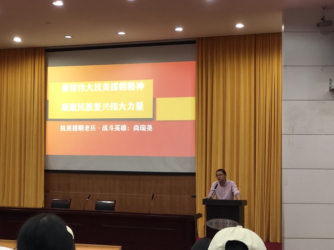 “我们是民族青年,我们有革命精神……”尚爷爷以一首革命老歌开场,瞬间将学员们带入了冲锋陷阵的烽火战争画面中。尚爷爷以自己的亲身经历为切入点,1950年10月,16岁的尚瑞尧报名参加抗美援朝伟大战争,他说,“是战士,就要上战场!保家卫国,非入朝不可!”