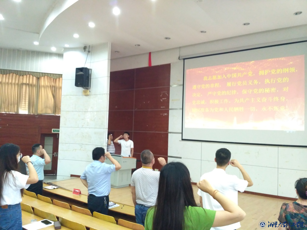 活动开始,全体党员同志一齐共唱国歌。随后,本科生党员代表带领全体党员同志重温了入党誓词,在庄重的宣誓声中,全体师生对党员的初心和使命有了更加深刻的理解。刘平乐宣读了《致毕业生党员一封信》,他希望毕业生党员要时刻牢记自己湘大人的身份,践行“博学笃行,盛德日新”的校训,坚定理想信念,不忘初心,为实现中华民族伟大复兴的中国梦贡献自己的力量。