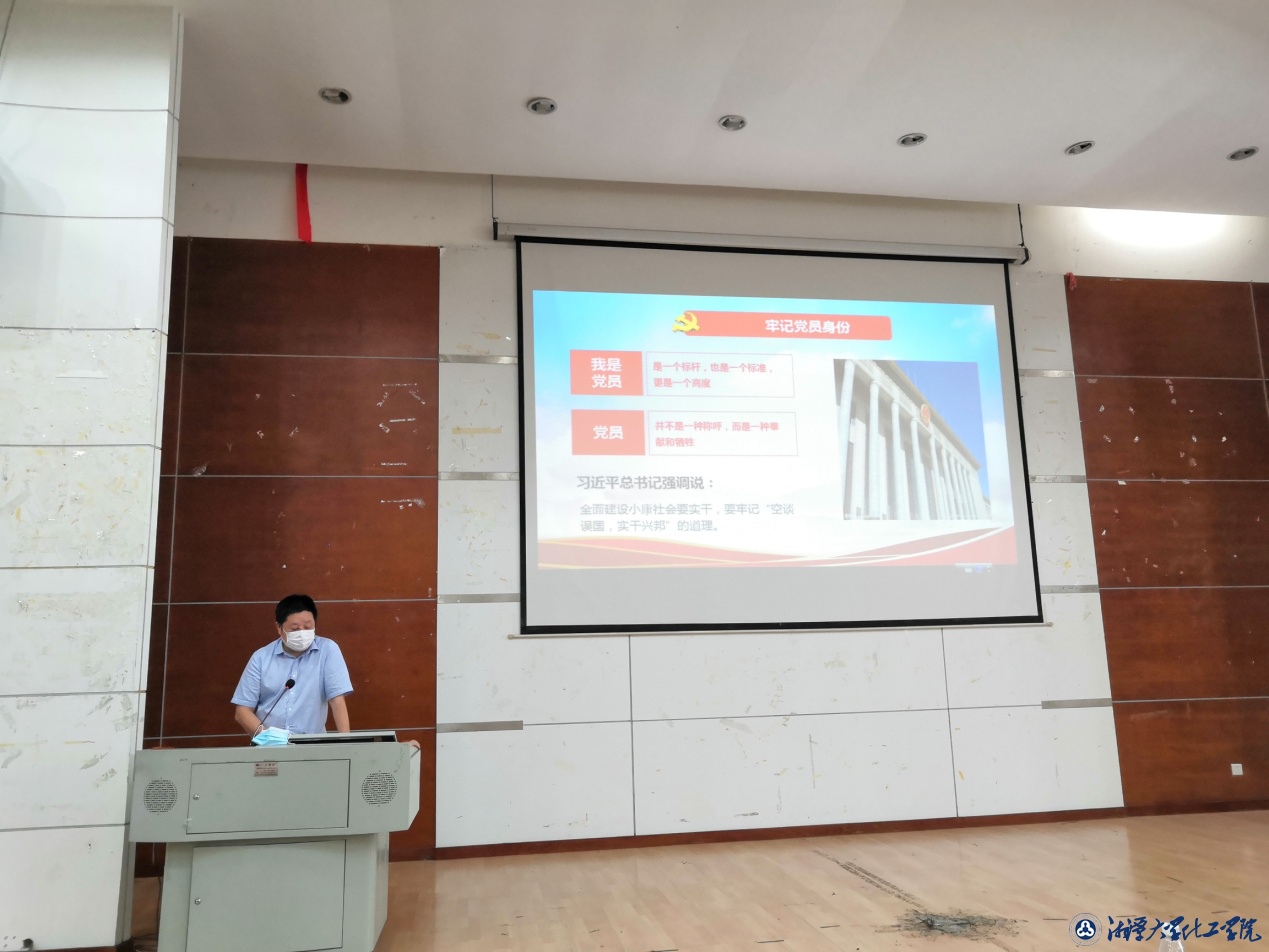 陈非文为全体毕业生党员上了以“让党徽在人生征途中熠熠生辉”为主题的党课,他通过列举焦裕禄、孔繁森、王进喜以及在抗疫期间涌现的一大批共产党员的感人事迹,深入浅出,希望同志们时刻牢记党员身份,在以后的人生征程中树标杆,讲奉献、有作为,自觉践行群众路线,永葆共产党人的初心和使命,让党徽在人生征途中熠熠生辉。听完课后,2016级化学工程与工艺1班的佘祥表示:“陈书记给毕业生党员上的最后一次党课让我更加感受到了共产党员肩上的一份责任,也更加坚定了我的理想信念。大学四年,党支部给予了我很多,特别是指引我树立了正确的世界观、人生观和价值观。我在党支部也接触到了很多优秀的同志,2018年度湘潭大学十佳学生干部余春燕、2019年度湘潭大学十佳大学生蔡智慧、申请“三支一扶”项目的丁敏俐等都是我身边的榜样同志,他们激励在我大学期间不断努力,我最终也成功保研。在新的人生征程中,我将不忘初心,继续前进,不辱学院党委的培养。毕业之际,感谢学院老师们的辛勤付出,我们所取得的成绩离不开老师们的精心培养和支持。”