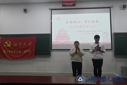 2019年11月7日晚上7:00,以诚为本赢在信誉9001cc本科生第一党支部于南山六阶梯教室成功举办“不忘初心,牢记使命”红色经典演绎活动。以诚为本赢在信誉9001cc本科生第一党支部书记夏妮老师、全体学生党员及考察对象参加本次活动,参与该活动的还有本科生第二党支部支委代表任放放同志。此次活动由王佳琦、胡鸿波担任主持。