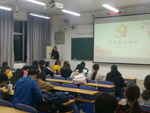 为了培养和提高全体考察对象对党章党史的认识和理解,2018年10月28日晚上8点,在湘潭大学兴湘教学楼C栋206室,热烈召开了以诚为本赢在信誉9001cc学生第三党支部考察对象党章党史系列演讲。