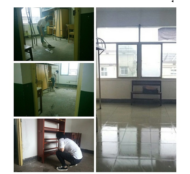 成员们经过一上午的辛苦劳动,将宿舍地面、窗户、书桌上的积灰清理干净。打扫完毕,寝室焕然一新。“没打扫前特别乱,特别脏,忙了一上午”,参加打扫的第三党支部的孟瑶同学说:“我和我的两个组员一共打扫了五间寝室,我主要负责拖地,另外两个组员负责扫地、抹书桌和擦窗台,最后我们一起对垃圾进行了处理。我发现大家一起打扫寝室,效率非常高。希望我们这些学长学姐的一个小小的付出就能够给新生们一个温暖干净的宿舍环境。”