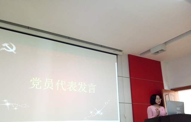 党课之后毕业生党员裴锐同学代表发言,她的语言朴实无华,简短而又感人肺腑,具有较强的震撼力,并以毛主席诗词《沁园春·雪》中的一段诗词作结:……俱往矣,数风流人物,还看今朝!掌声此起彼伏!