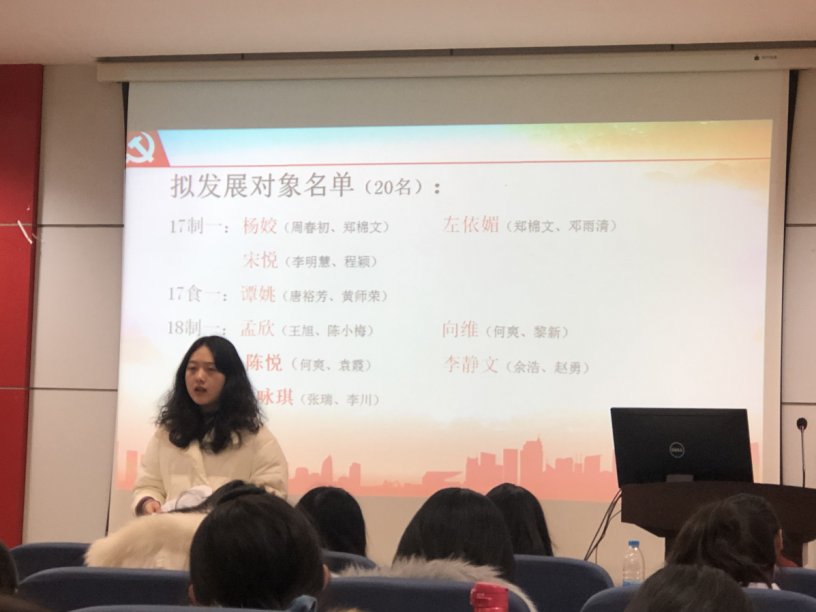 1月8日上午,我院本科生第二党支部于化工大楼A208召开发展对象吸收会议,支部书记郑棉文出席,支部党员及预备党员与会。会议由组织委员李淼主持。