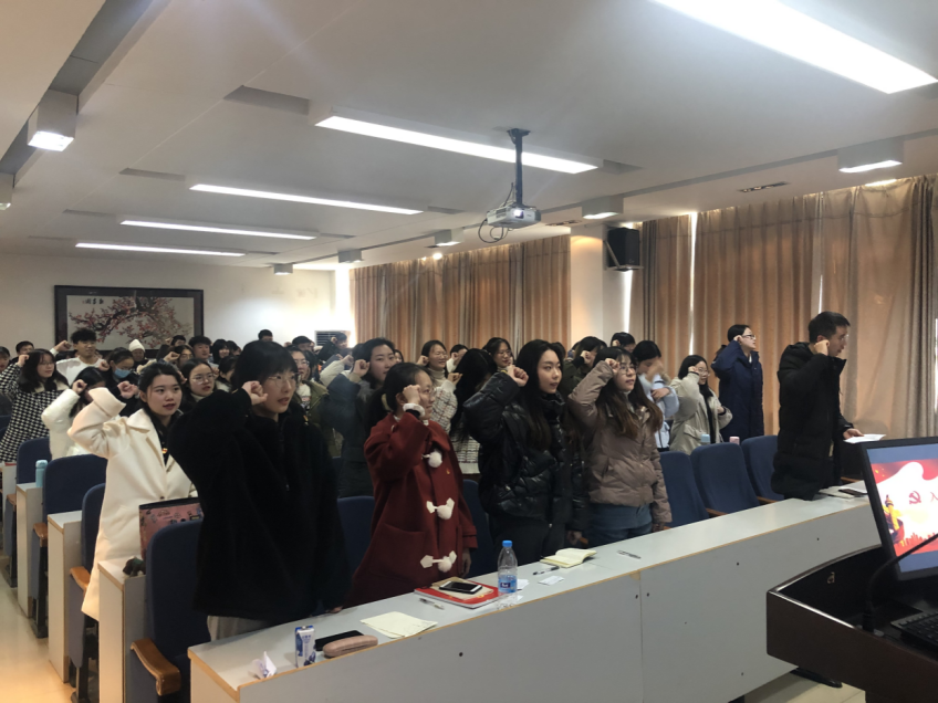 郑棉文书记带领新吸收的20名预备党员宣誓,支部党员、预备党员重温入党誓词。近70名中共党员及预备党员面对鲜红的党旗,高举右手,声音洪亮地高诵入党誓词,庄严地发出誓言。
