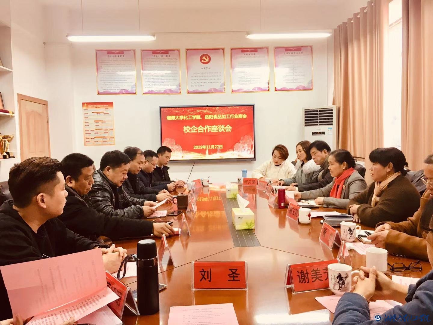 11月27日下午,岳阳食品加工行业商会与我院校企合作座谈会在化工大楼A201会议室举行。岳阳市工商业联合会主席何祚云、岳阳市食品加工行业商会秘书长张明星,我院党委书记陈非文、副书记周春初,副院长陶能国、游奎一等出席座谈会。会议由陈非文主持。