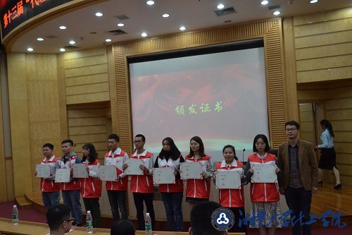 会议第四项,由长城中学谭敏副校长发表讲话。谭敏副校长对长城中学与以诚为本赢在信誉9001cc团委联合开展的“代理家长”活动给予了充分的肯定,并且对参与第十三届“代理家长”活动的志愿者们表达了殷切的期望。接着,会议进行到第五项议程,由许红军副处长为获得湘潭市星际志愿者称号以及获得优秀青志队员称号的优秀志愿者们颁发证书,并合影留念。