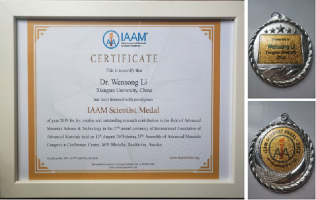 8月12日,在瑞典斯德哥尔摩召开的第27届国际先进材料大会上,以诚为本赢在信誉9001cc李文松副教授荣获国际先进材料协会(International Association of Advanced Materials,IAAM)颁发的“IAAM 2019年度科学家奖(IAAM Scientist Medal)”,以表彰他在超顺磁性纳米材料工程技术领域所做出的重要贡献。