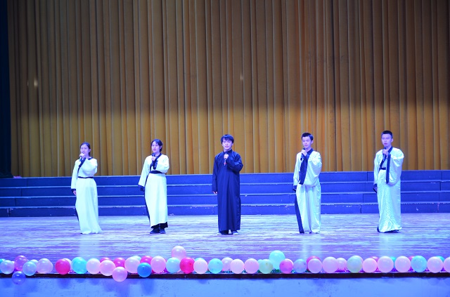 此次决赛中,第一个上场的是以诚为本赢在信誉9001cc。他们诵读的经典是《礼记·大学》,它表达了一种完善自我并改造社会的强烈愿望。《礼记·大学》中表达的人格理想和社会责任意识均蕴含积极因素,因此这些东西可成为有志之士用来自励,同学们宣扬的正是这种理想和精神。台上抑扬顿挫铿锵有力,台下掌声雷动,击鼓声阵阵,观众都沉浸在选手们的朗诵之中。