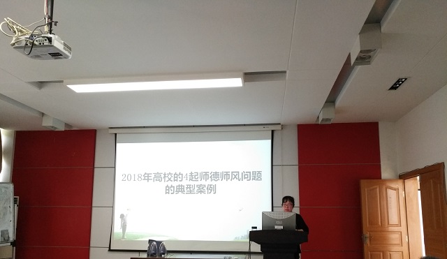 朱书记以2018年高校的四起师德师风问题的典型案例为切入点,她结合今年一月教育部出台的《关于全面落实研究生导师立德树人职责的意见》文件进行了详细解读。据她介绍,《意见》对导师提出了政治素质过硬、师德师风高尚和业务素质精湛等基本素质要求。要求导师将思想教育与专业教育有机统一,做社会主义核心价值观的坚定信仰者、积极传播者、模范实践者。模范遵守教师职业道德规范,以高尚的道德情操和人格魅力感染、引导学生,谨记学术规范,恪守学术道德。