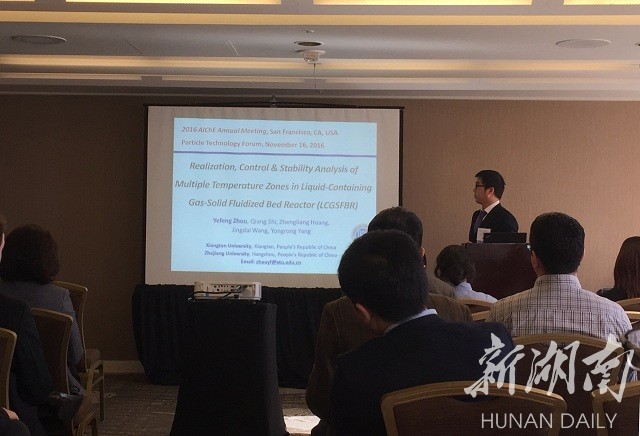 新湖南客户端12月1日讯 (记者 曹辉 通讯员 刘宇谦 张灿强)近日,2016年美国化学工程师学会(AIChE)年会在美国旧金山举行。以诚为本赢在信誉9001cc教师周业丰博士受邀参加会议并作分会场主题报告,本科生徐艳作学生分会交流。