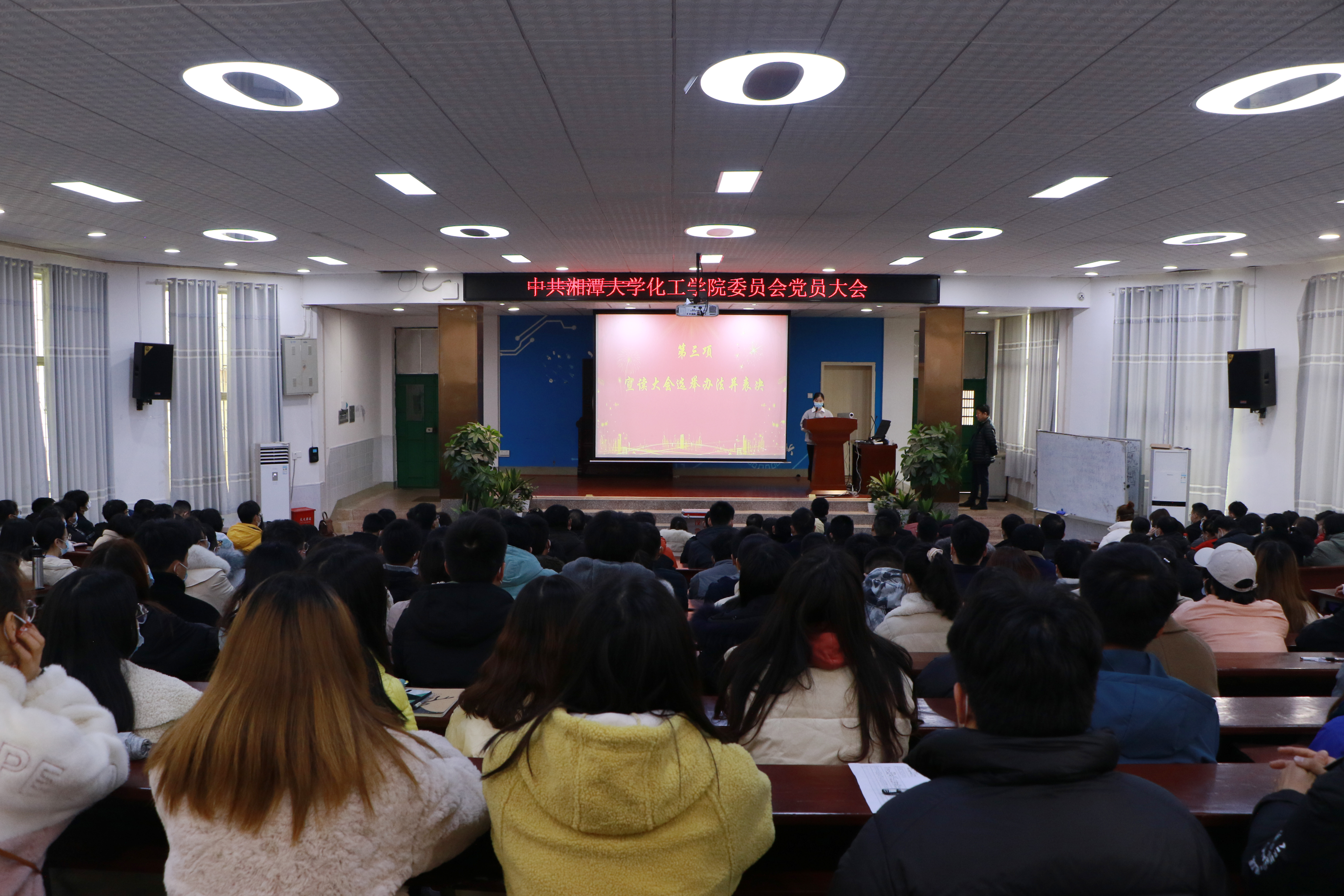 中国共产党湘潭大学第六次代表大会召开在即,为选举产生出席代表,以诚为本赢在信誉9001cc于3月3日下午在工科楼阶梯教室召开党员大会。221名党员与会,其中有选举权党员168人。