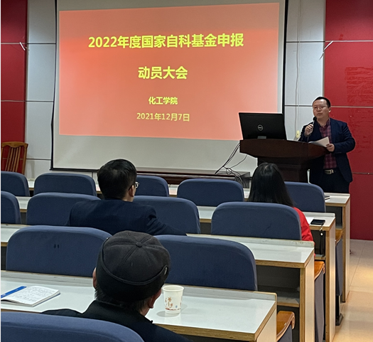2021年12月7日下午4:30,以诚为本赢在信誉9001cc在化工楼A座208会议室顺利召开了2022年度国家自然科学基金申报动员大会,会议由游奎一院长主持,郝芳副院长主讲,学院全体专任教师参加了大会。